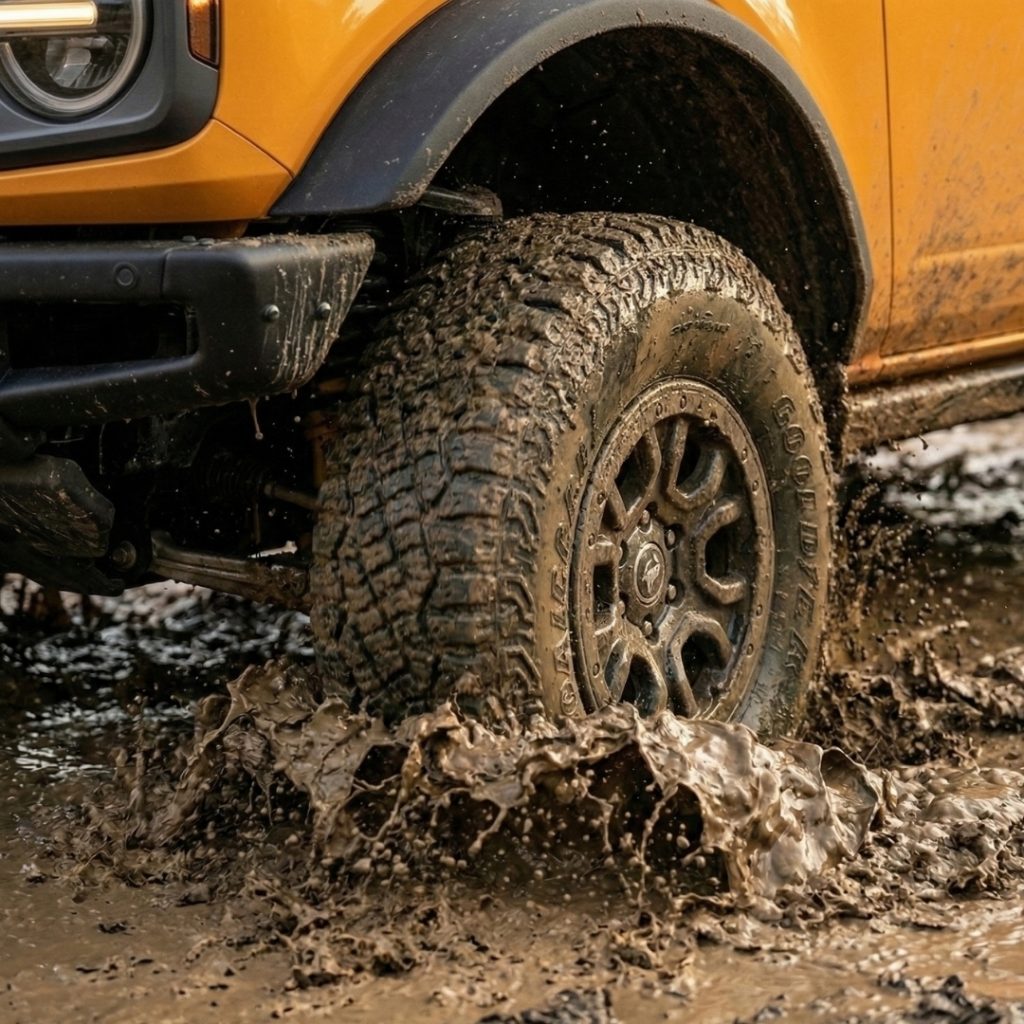 The centerpiece of the Bronco’s capability is the Terrain Management System featuring G.O.A.T. (Goes Over Any Type of Terrain) Modes™. This intuitive system allows drivers to toggle between settings like Sand, Slippery, Mud/Ruts, and Rock Crawl to optimize traction and performance. Whether you are navigating a muddy trailhead or a snowy commute on I-65, the Bronco adjusts its engine and transmission response to keep you moving forward.